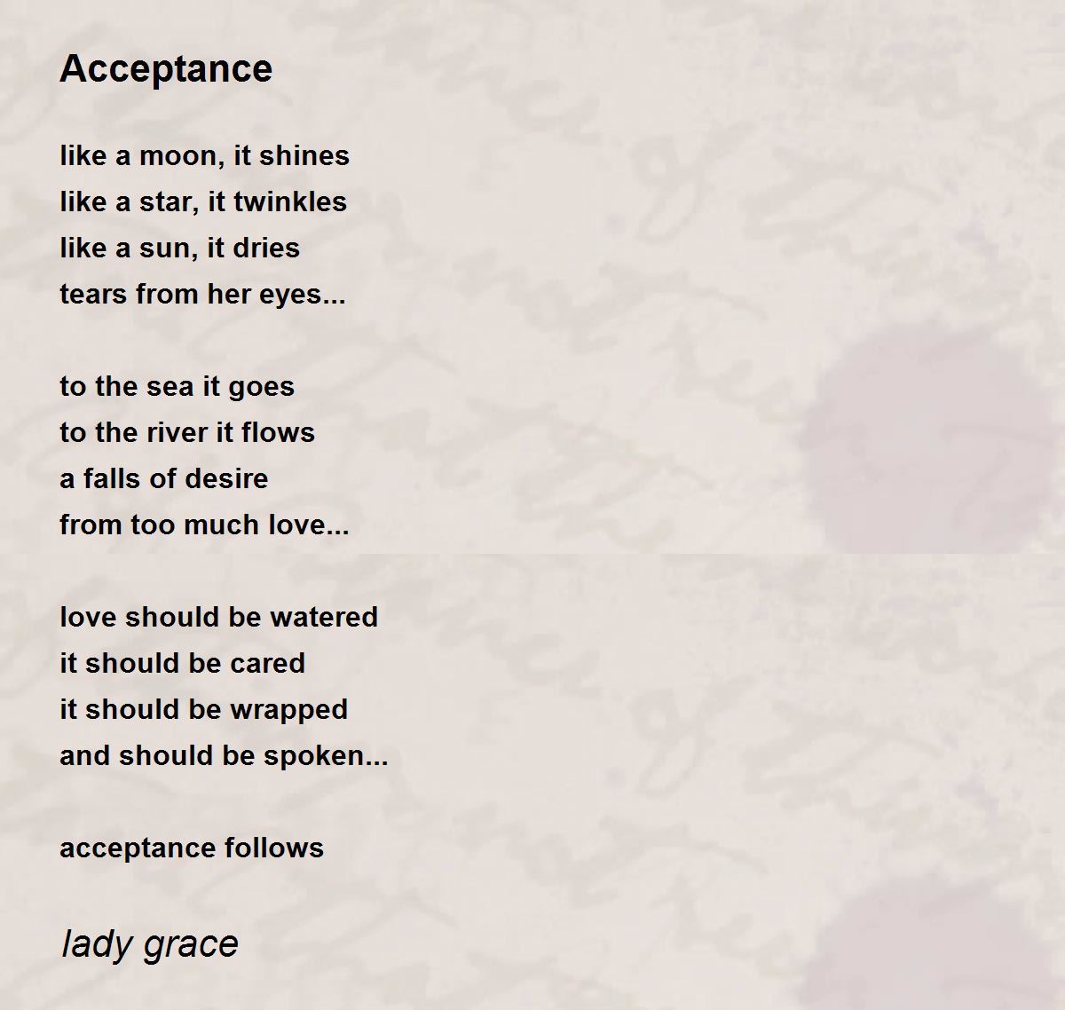 Poem About Acceptance I Accept Myself from www.a-spiritual-journey-of-healing.com We did not find results for: Check spelling or type a new query. Maybe you would like to learn more about one of these?